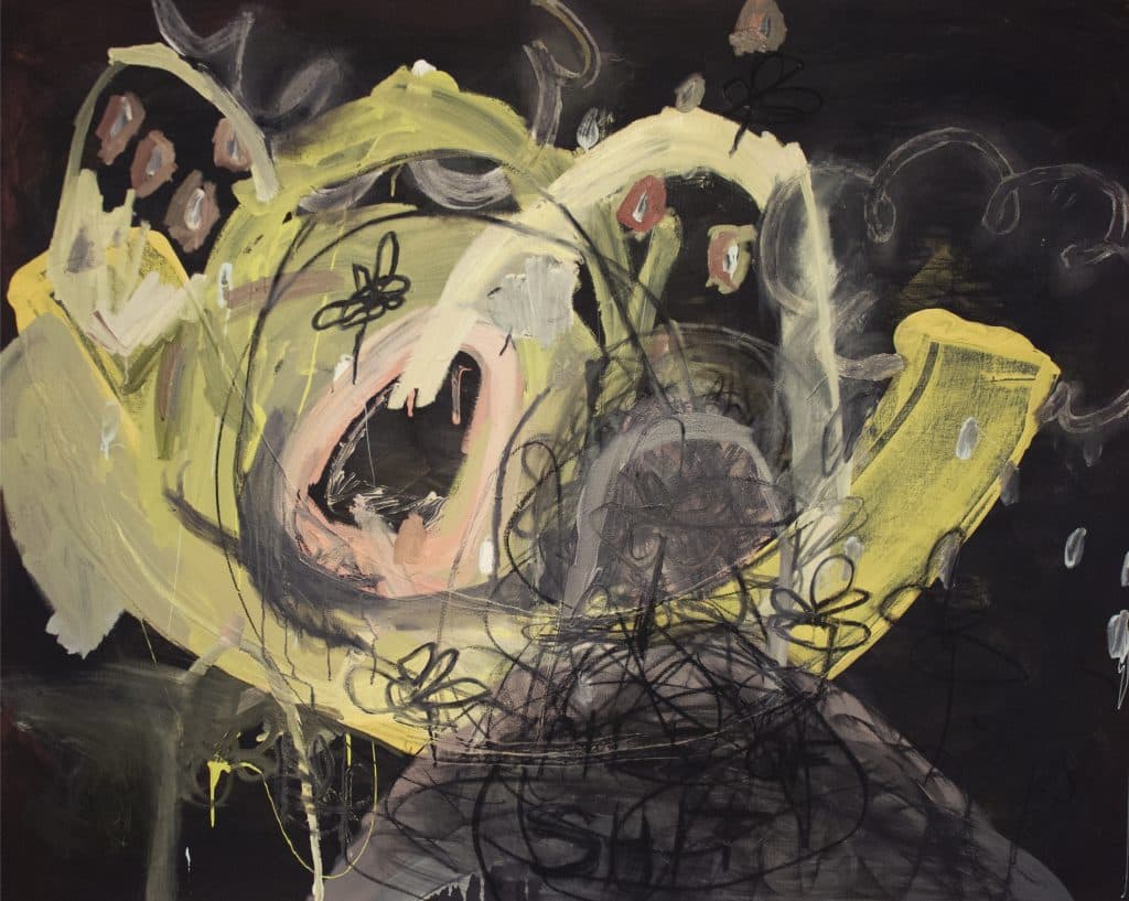 - enamel, acrylic, charcoal, and oil on canvas