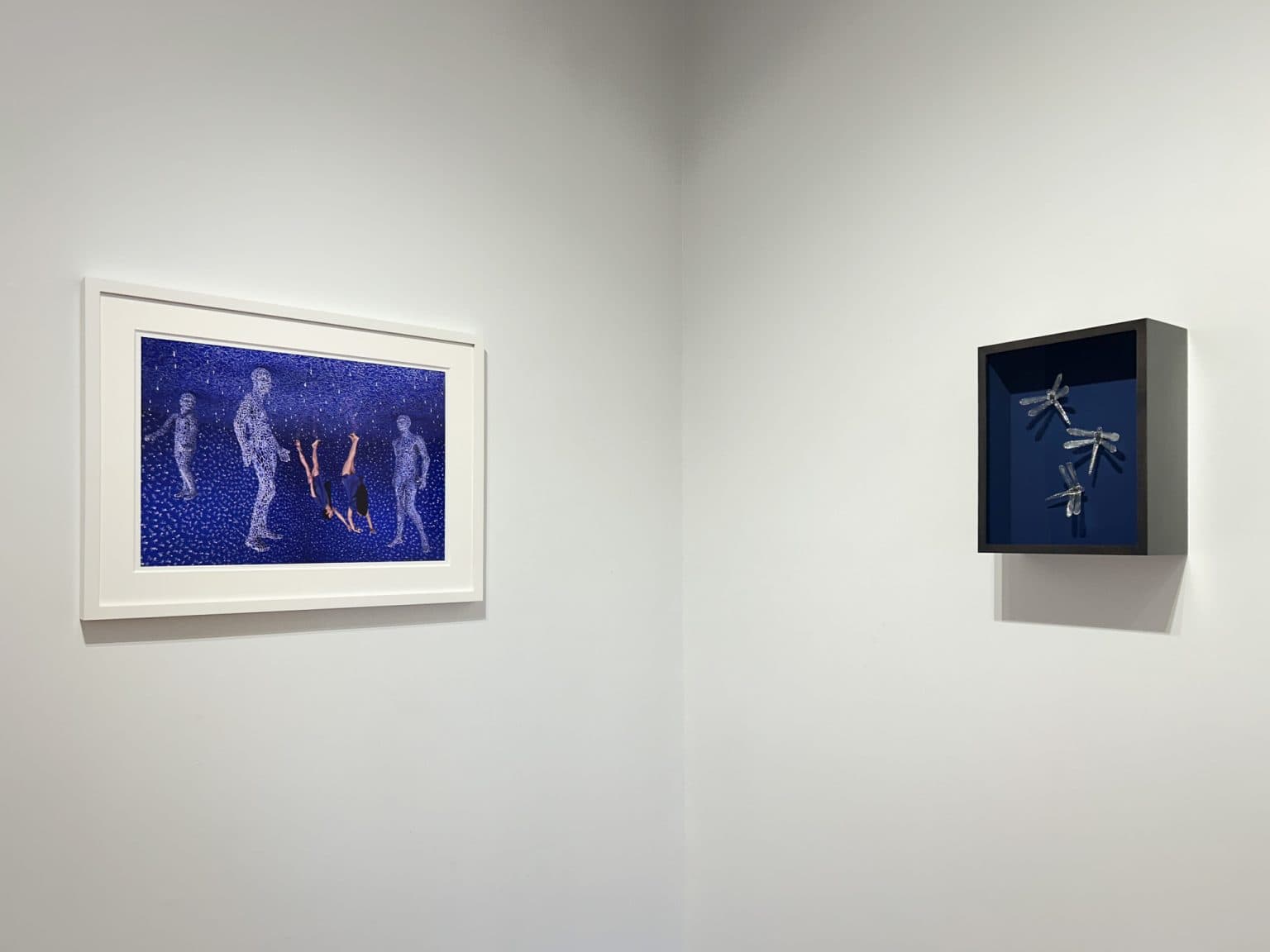 - handmade borosilicate glass dragonflies in shadowbox