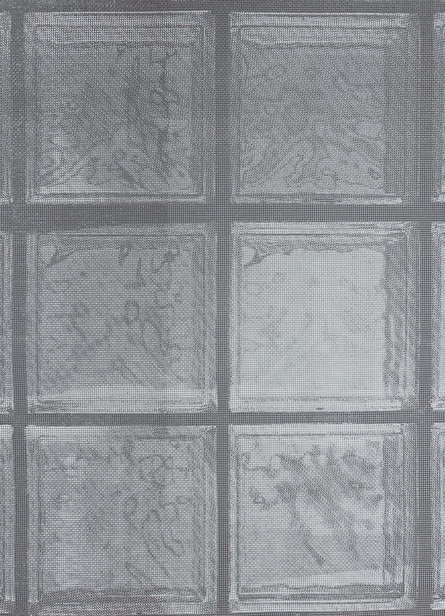 - screen print on fiberglass screen mesh, two sided
